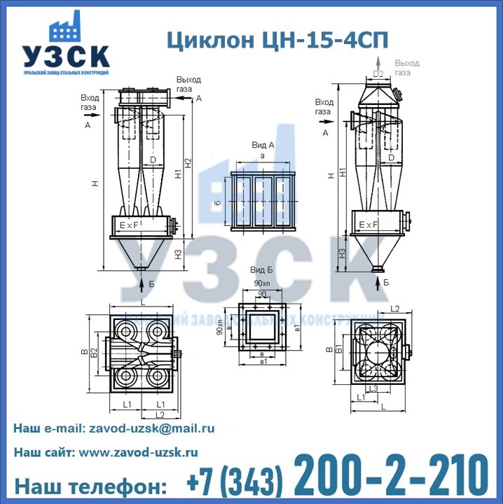 | ЦИКЛОН ЦН-15-900х4СП | 1700 | 2150 | 994 | 604 | 1070 | 1047 | 300 | 440 | 3330 |