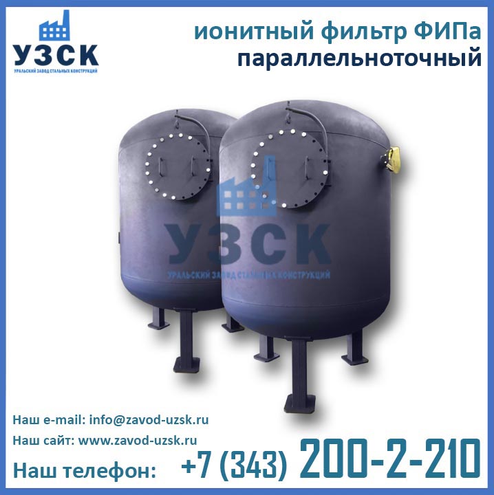 Для заказа ионитного параллельноточного фильтра принято использовать следующее обозначение: ФИПа-2-3,4-0,6, где ФИПа – фильтр ионитный параллельноточный; 2 – 2 ступени очистки; 3,4 – диаметр корпуса фильтра 3,4 м (3400 мм); 0,6 – рабочее давление 0,6 МПа (6 кгс/см2).